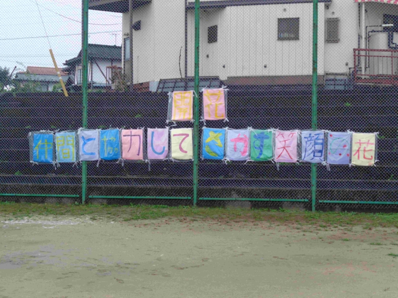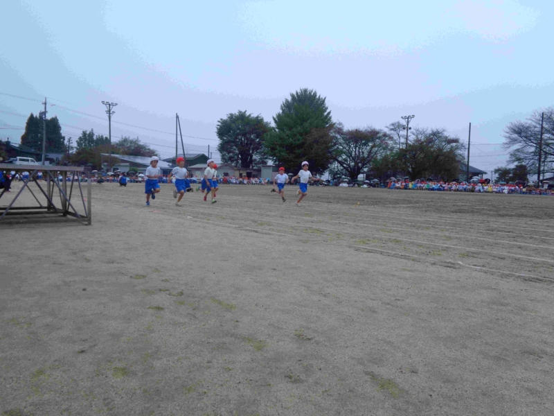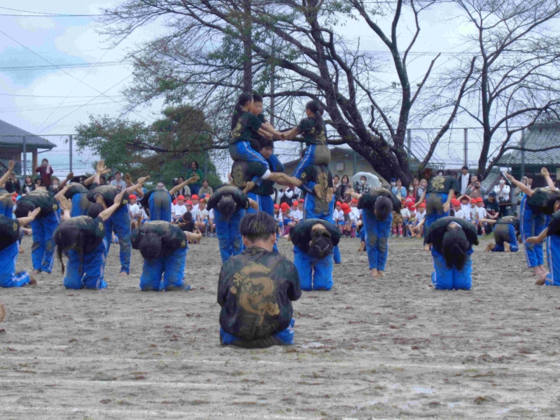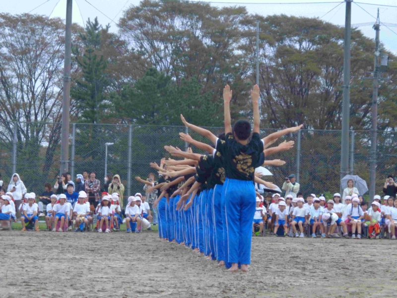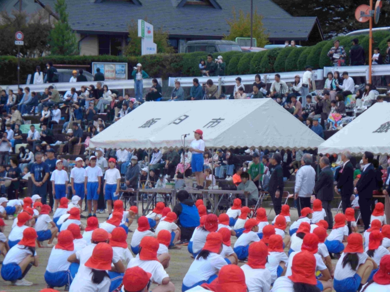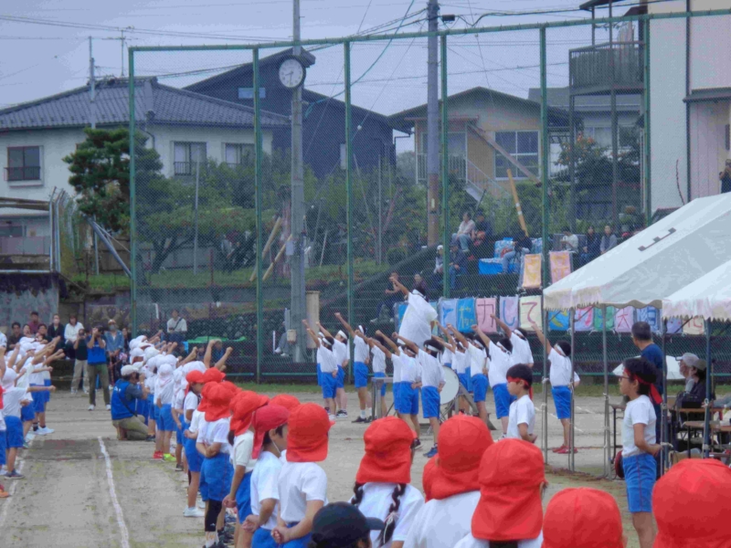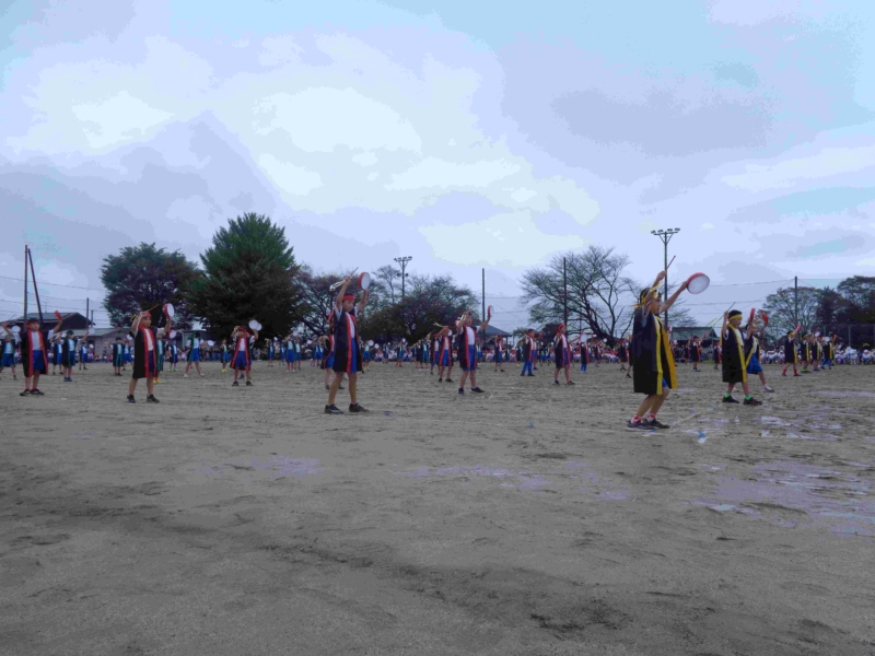 雨のため予定日より一日延期して10月5日(日)に運動会が実施されました。「開花 仲間と協力してさかす笑顔の花」というスローガンのもと、かけっこや組体操や騎馬戦や竹引きなどの各学年種目、応援合戦に一人一人が精いっぱいの力を発揮していました。前日から当日にかけて不安定な天気だったため、PTA役員の皆様が朝早くからグラウンドの水の吸い取りなどご協力いただき、何とか開催することができました。しかし、途中から雨が強まったため、綱引きは中止、短距離走の残りは後日改めて実施されました。観覧いただいた皆様、準備や後片付けや交通整理などで協力いただいたPTAや地域の皆様、誠にありがとうございました。
