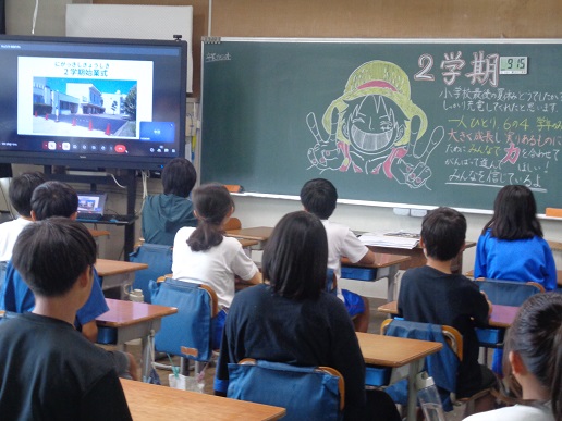 8月22日(金)に2学期始業式が行われ、3年生と4年生の代表児童の発表、校長先生のお話、校歌の合唱がありました。児童の発表では、2学期にできるようにがんばりたいなど、2学期に向けためあてのが発表されました。校長先生が出張のため、校長講話は教頭先生による代読でした。夏休みに活躍した合唱団、人形劇を発表した4年2組と3組の皆さん、6年生による飯田りんごんでの活躍などが紹介されました。2学期も一人一人が輝く伊賀良小学校をめざして、自分の決めた目標にむかってがんばりましょうという内容のお話でした。